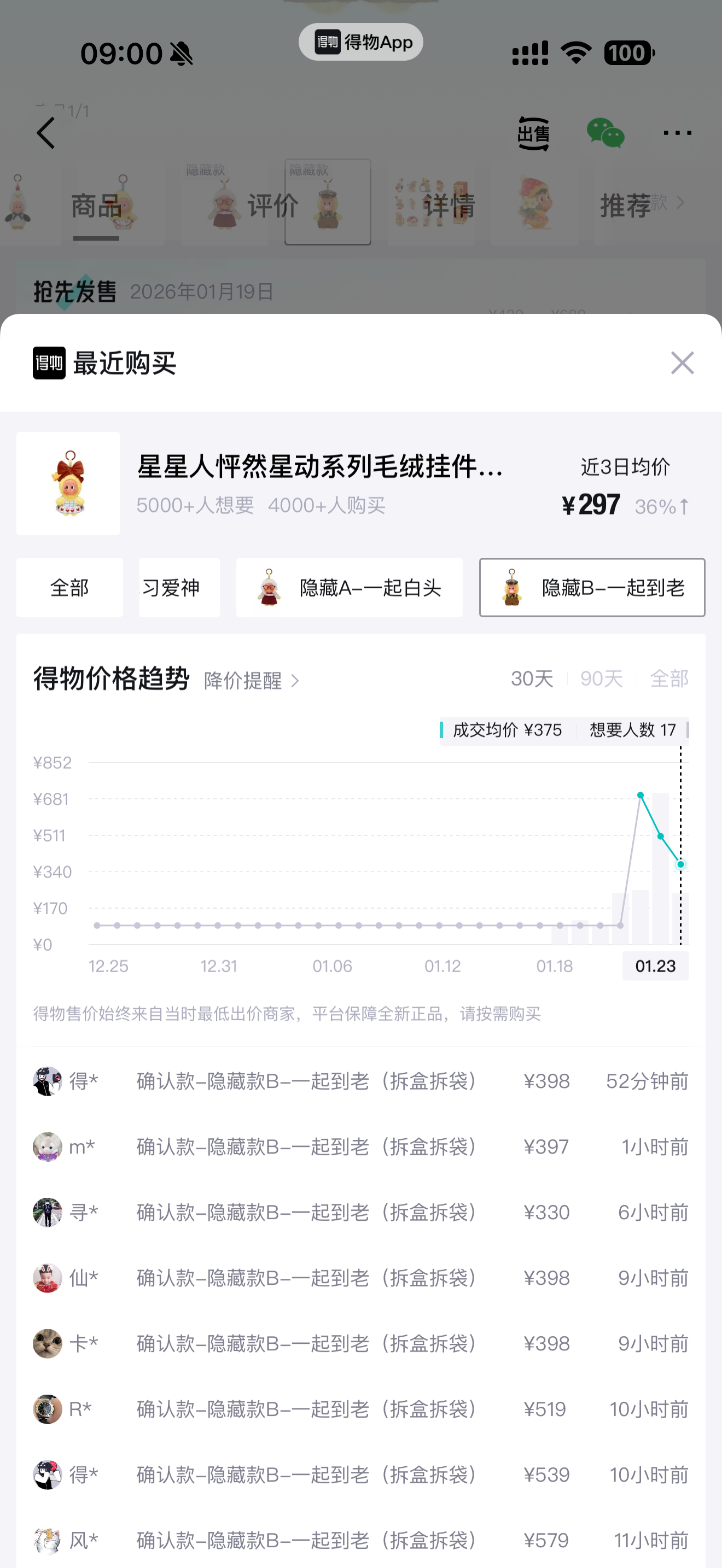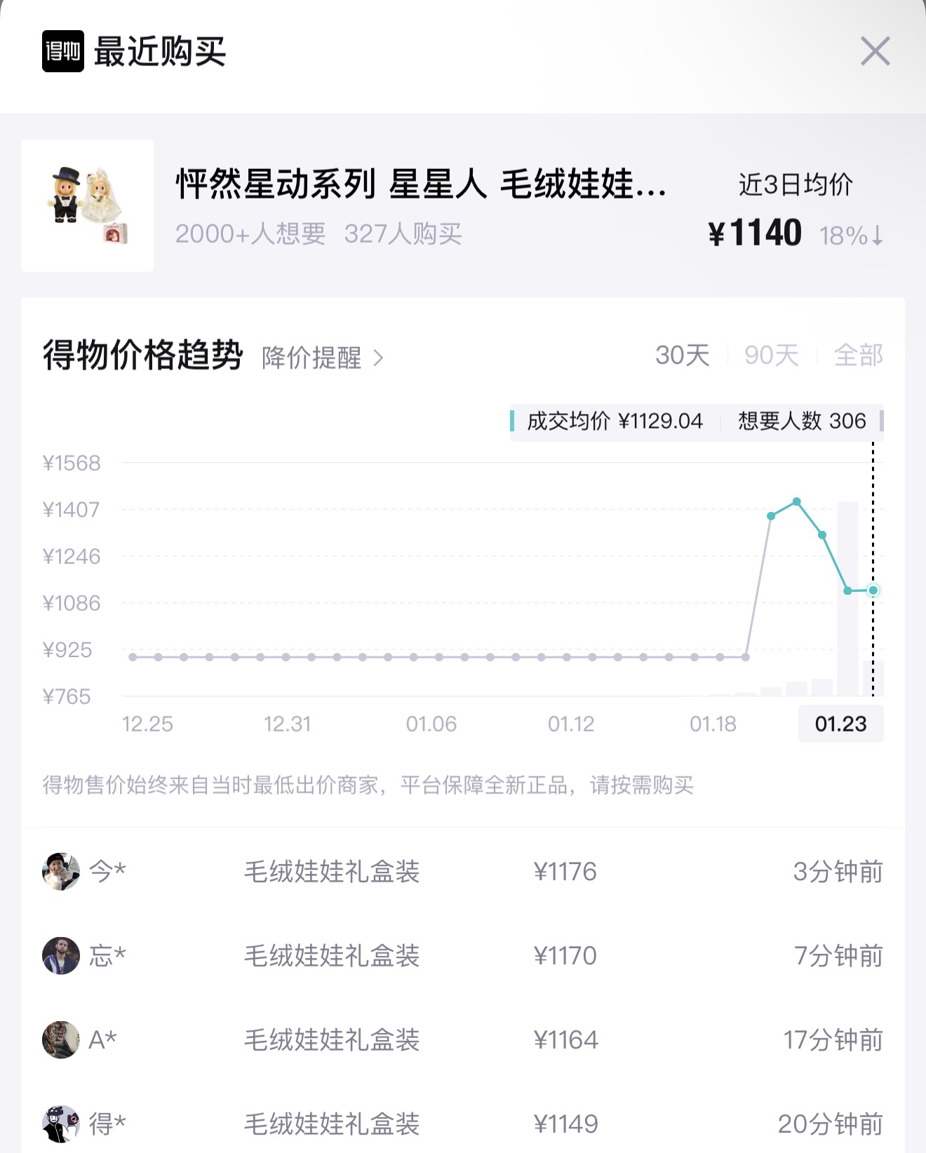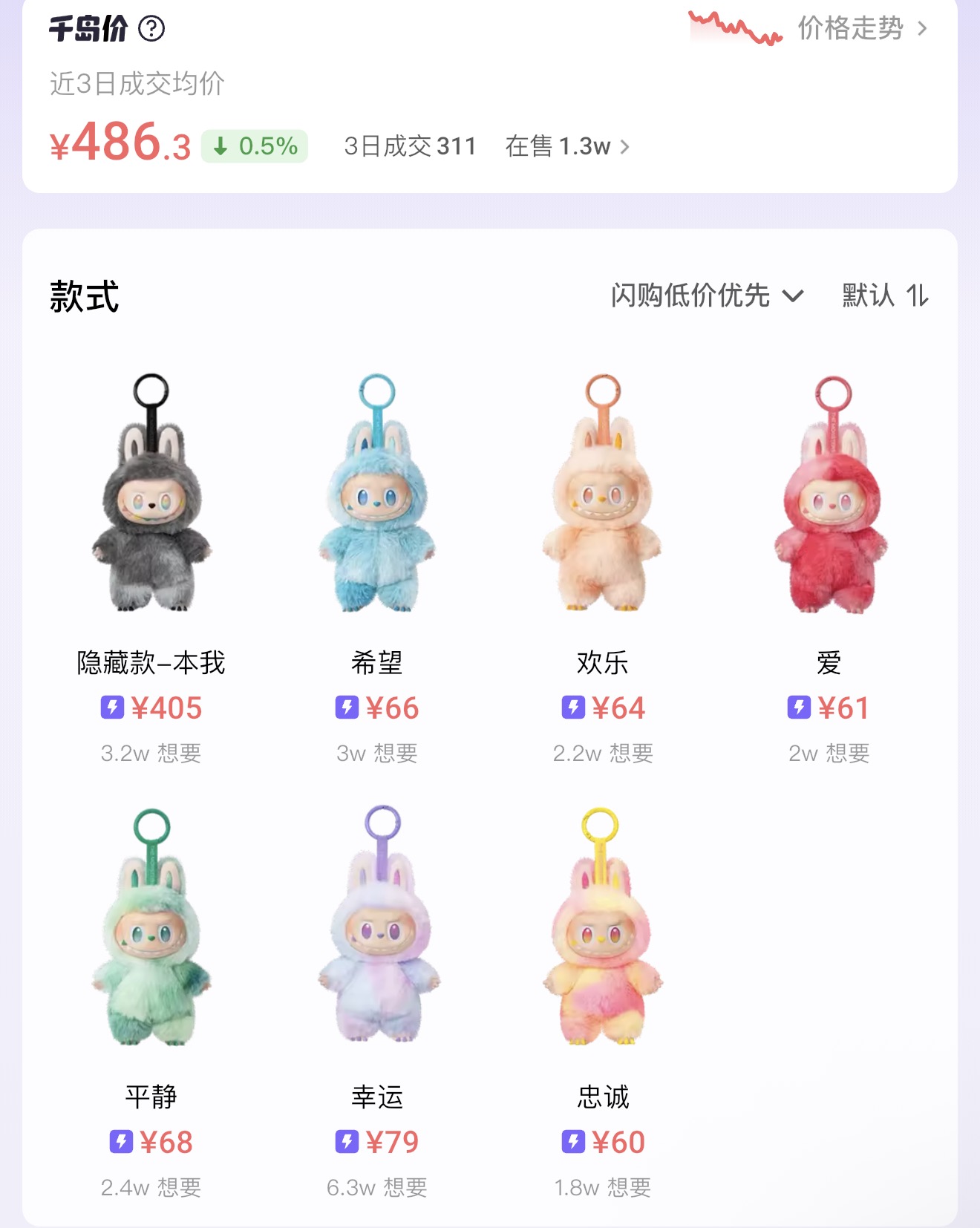 星星人毛绒隐藏款二级市场成交均价两天连降